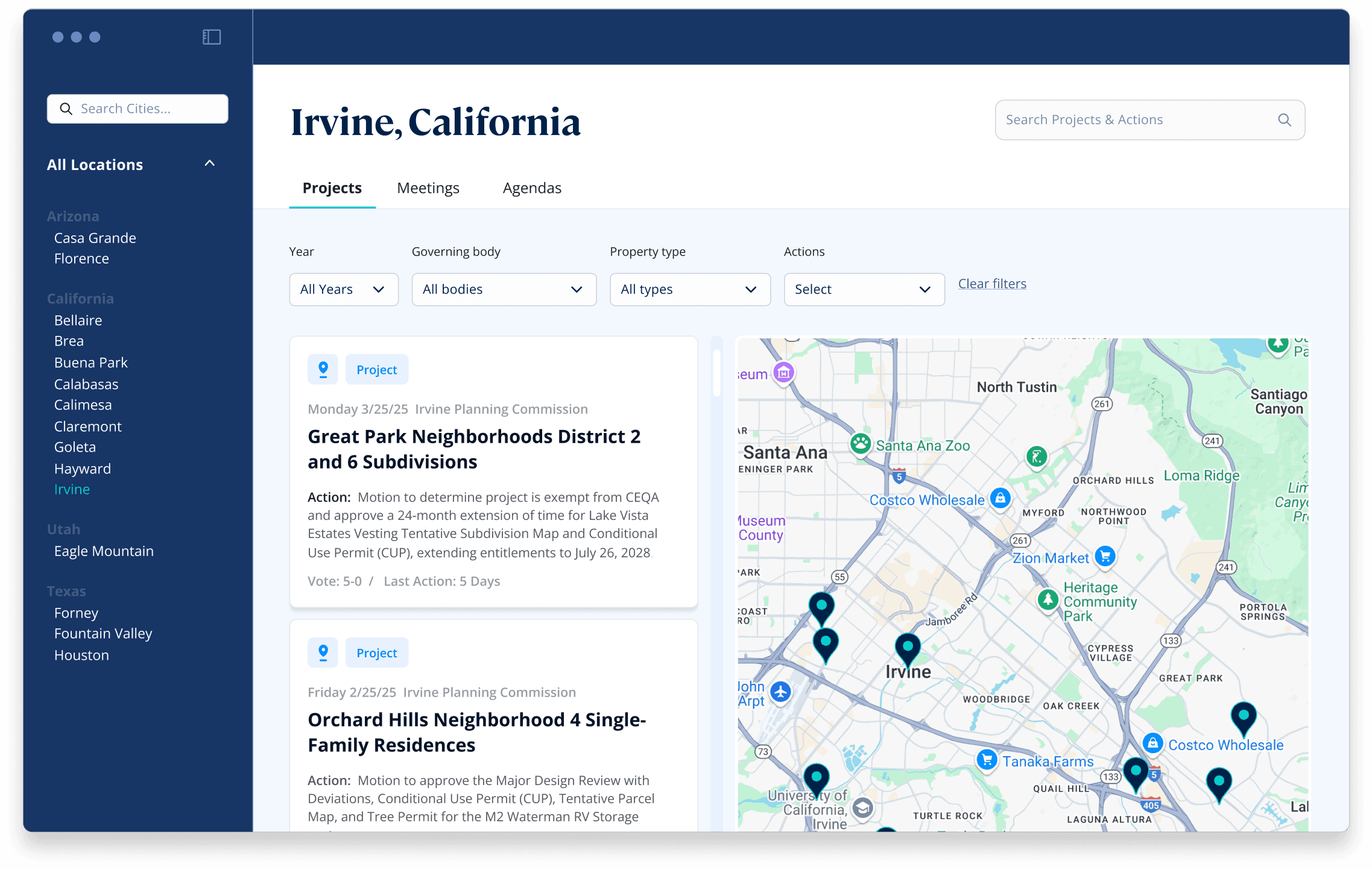Track zoning changes, utility discussions, and infrastructure projects that signal data center development opportunities. Stay ahead of regulatory changes and understand local sentiment around large-scale development projects.